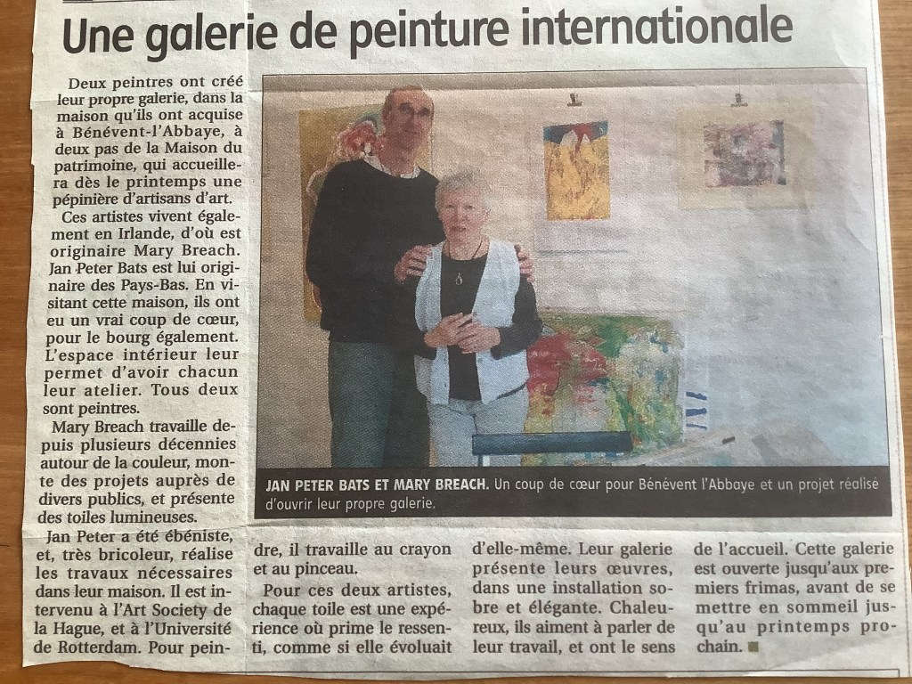 Translated version. Two painters have created their own gallery, in the house they acquired in Bénévent-l’Abbaye, France – just a stone’s throw from the Heritage House, which will host a hub for artisan creators starting this spring.